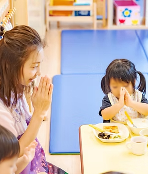 楽しい食事の時間を通して作法や協調性を学び、好き嫌いを克服する機会にもなっています。