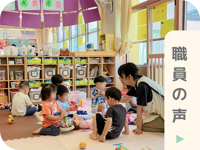 広田保育所では、遊びを中心に子ども一人ひとりの主体性を大切にした保育を行っています。「みんなで子どもを見ていく」という考えのもと、クラスの枠にとらわれすぎず、職員同士が連携しながら日々の保育にあたっています。
