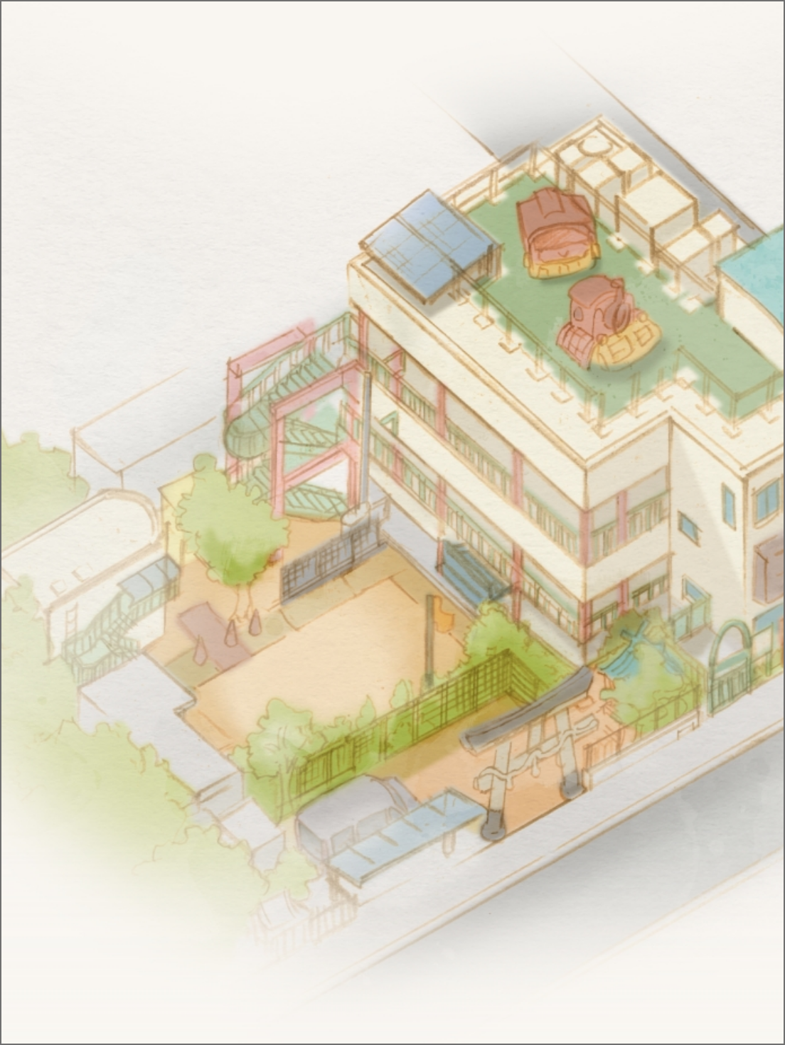 • 基本的生活習慣を身に付け、それぞれの子どもたちの成長にあった音楽、絵画造形、遊戯等の活動や、バランスの取れた給食を通じて、子どもたちの生きるための基礎となる心情・意欲・態度が身に付くよう、健全な心身の成長・発達を指導・援助します。